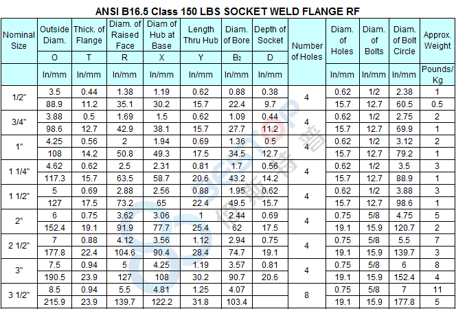 * For other pressure rating or details of ANSI B16.5 ,Please contact with us by Email or Calling.
